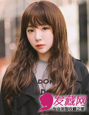 碎发的刘海搭配山坡上中长卷发,制造出十足的空气烫效果,再搭配时髦的棕色染发,更显美眉时尚潮流的气息,显得魅力十足。