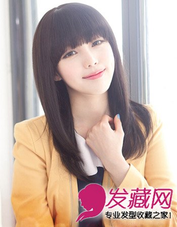 ,搭配唯美的中长直发设计,不仅展现美眉的淑女气质,还是一款非适合上班族的妹纸的一款OL发型。