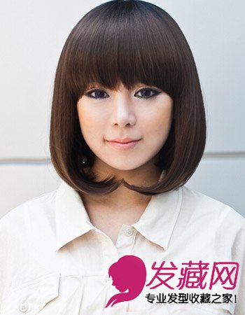 内扣的齐肩发型,加上减龄的刘海设计,完美展现美眉的精致小脸,是一款修颜减龄的气质韩式发型,十分凸显妹纸的清纯气质。