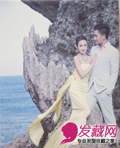 华丽款的新娘造型,身穿黄色礼服的林依晨感觉很是高调,精致的妆容,霸气的背头造型,倚靠在男友怀中,女王范十足。