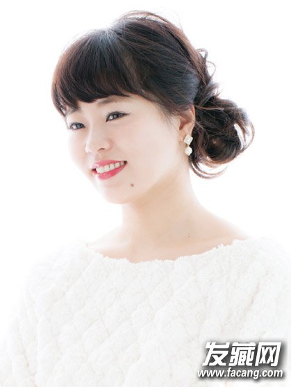 也是一款丸子头扎发,在齐刘海的衬托下,这款发型变得温婉有气质,非常适合轻熟女。