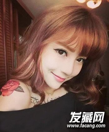 金棕色的炫丽发色彰显出非主流女生的独特个性,慵懒的齐肩卷发,配上俏皮的韩式刘海,潮范十足。