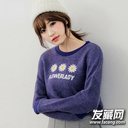 韩式扎发发型,齐刘海配上层次感的剪裁,修颜更显脸小,对脸上有肉的妹子来说这款发型可是不可少。