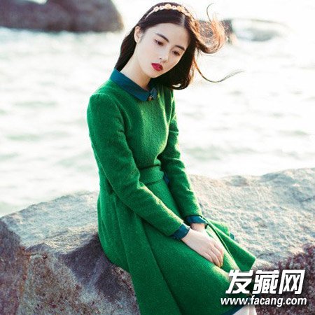 ,中分的黑色长发搭配发箍超显淑女气质,甜美迷人,复古感的妆容气质更是无人能及。