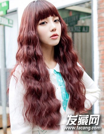 ,搭配蓬松的韩式长卷发,再加上酒红色的染发颜色,打造一款时尚潮流的气质卷