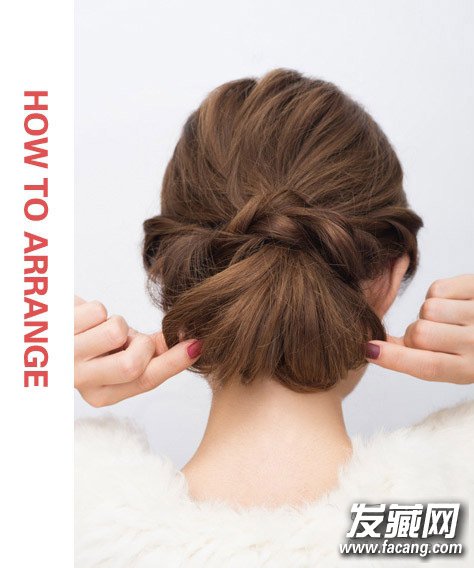 step3:右侧重复同样步骤后将半扎发向两侧拉扯出蓬松感。