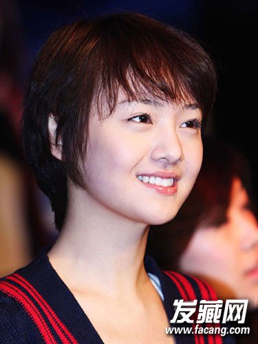 留着空气感刘海的俏丽短发,搭配淡雅裸妆,展现一种中性的可爱特质。