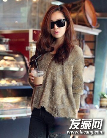 一款很显温暖风式的冬季女生适合的发型,同样是时尚的偏分设计,而配合这种发梢蓬松的烫发造型与一副简单的墨镜相搭更是时尚迷人。