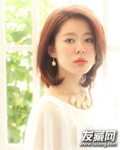 清纯气质的内扣齐肩发型,加上空气感的刘海搭配,展现出十足的婉约气息,再搭配深棕色的染发颜色,更显妹纸的洁白肌肤。