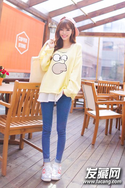 发型,亮眼的棕色系和黄色毛衣搭配,很是自然甜美,给人一种暖暖的感觉。