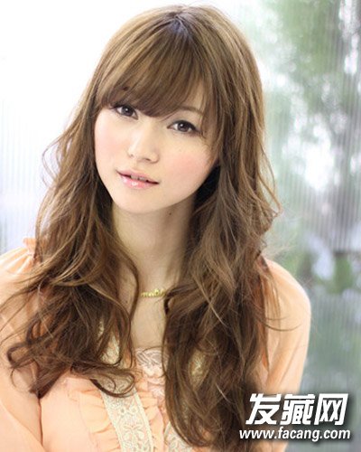 斜分刘海搭配波浪卷发发型 长卷