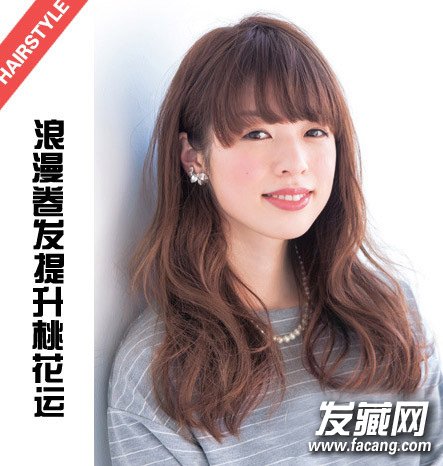 发型点评:略长的刘海剪裁出半弧形轮廓,在刘海的衬托下一双眼睛可爱灵动。棕色长卷发稍显凌乱,摆动在肩头甜美升级。