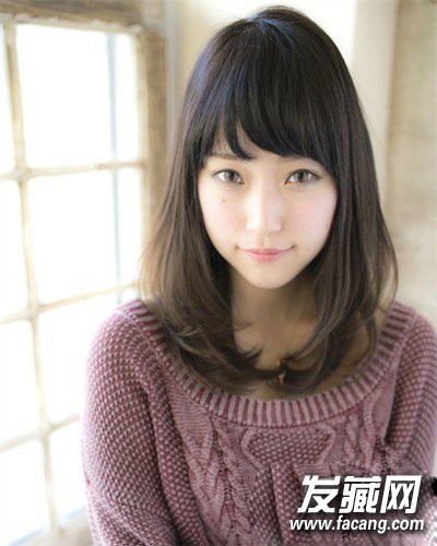 内扣的刘海呈现半圆型的样式,突显小女生的可爱感觉,散落肩膀两侧的秀发刚好可以包裹住脸颊的棱角,几道大卷带出浪漫气息。