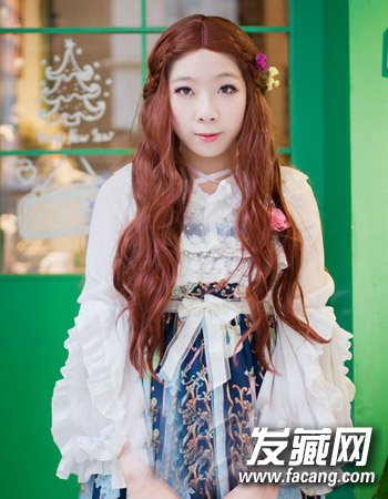 这一款是比较日式的风格,因为日式的妹子们基本有些肉肉脸,而这款造型气质的中分加上甜美的刘海编发与气质的长卷发很好的打造出瘦脸的时尚感来。