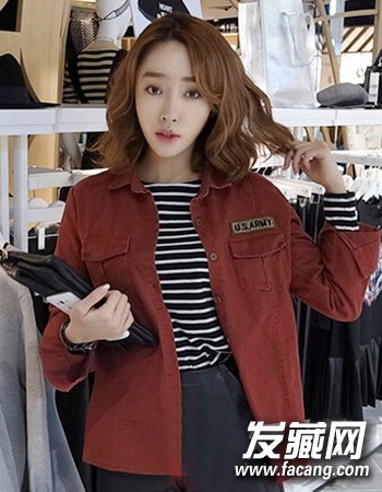 时尚的中分造型设计不管在哪个时代都不会过时,而配合这种简单的中短发蛋卷头更显小女生的温柔可爱风,清新低调的棕色染发更添低调感。