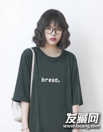 ,清新自然的乌黑发色可是最显女生的清纯气质风了,而配合空气感刘海形式的中短发蛋卷头更添活泼可爱感。