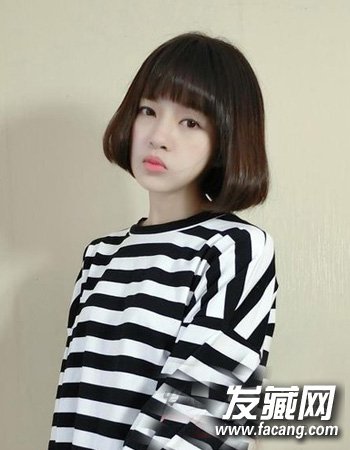 很显清新甜美风式的一款2015年最新短卷发发型,只是简单的将中短发波波头的发梢进行内扣式的烫发处理来增添女生的活力感,厚重的刘海与清新的发色更添小女生的娇小可爱风。