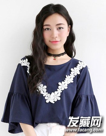 清新自然的发色彰显的可是女生十足的简单大方感,再配合这种优雅的偏分造型设计与类似于玉米烫的韩国长卷发造型同样很显十足的清新甜美风。