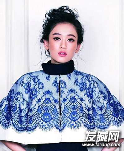 头发被一一盘起,光洁的额头饱满而清爽。蓬松的发束在头顶肆意盛开,修颜又显气质。