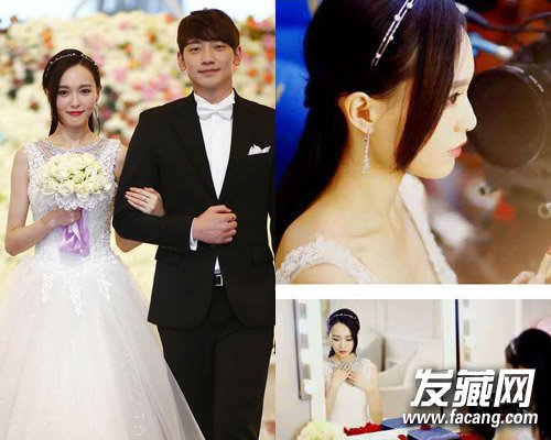 一样很惊艳,长长刘海沿着脸颊而下,很好的修饰了脸型,半扎公主头搭配钻石发箍,甜美清纯,高贵宛如公主。
