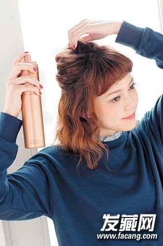 用发针固定后,抓起希望做出蓬松效果的部分用喷雾来定型。