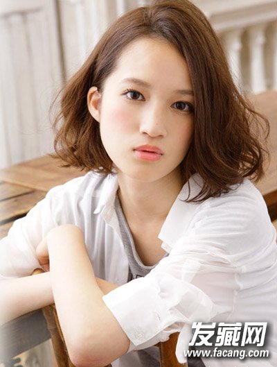 发型点评:侧分长刘海沿着脸颊摆动开来,另外一侧的头发随意别起,蓬松的短卷发烫发甜美而个性。