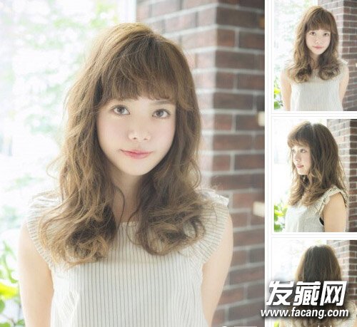 发型点评:浅棕色长卷发散发出浪漫迷人的色泽,厚重的刘海注入空气感设计后饱满修颜而不失清爽。稍显凌乱的卷发修饰出精致小脸。