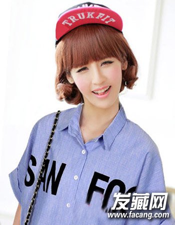 的设计,将刘海裁剪齐平,发尾的小卷显得灵动时尚,而且搭配上棒球帽更显时尚与个性感。