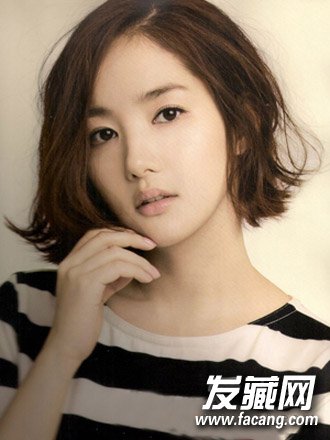 的MM可以尝试这款韩式短卷发,不对称的发量设计配合烫卷的长斜刘海很有瘦脸效果。