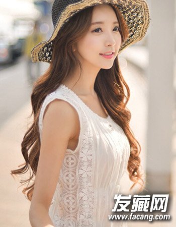 浪漫的长卷发搭配上帽子颇显波西米亚风格,气质的中分发型显露出无比的时尚感来,而且发尾的小卷衬托出灵动的气质来。