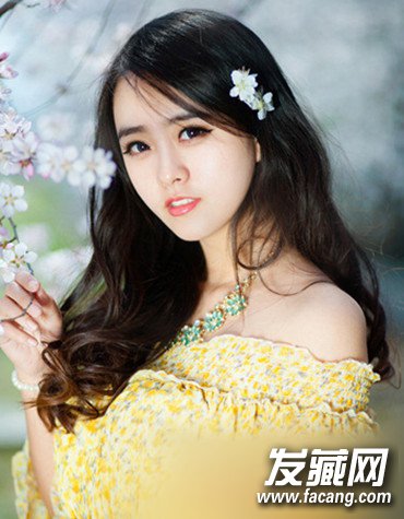 一款非常甜美可人的长卷发发型,侧分的长刘海将女生精致的鹅蛋脸型显露无疑,波浪式的长卷发全部散落在肩部,气质尽显,自然的黑色发色尽显清新大气,宛如画中美人。