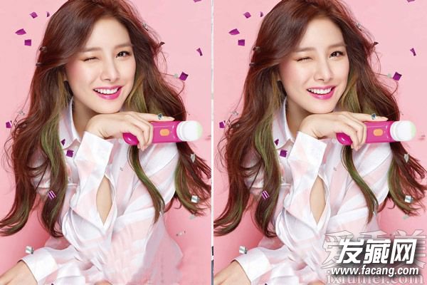 圆脸和大脸MM必备的一款韩式中分波浪卷发发型,长发烫出蓬松的外翻波浪发卷,渐变色染发显白显嫩。