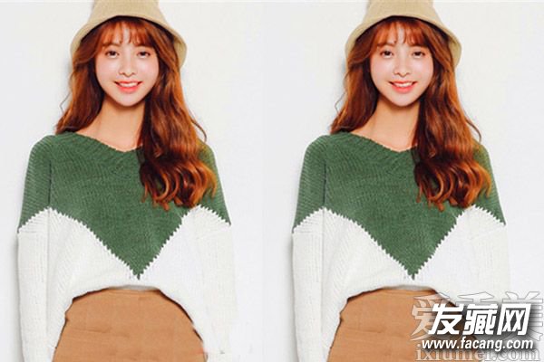 搭配的是明亮温暖的橘黄色染发颜色来衬托出女生的活泼可爱感,而且还显肤色的白皙红润感,搭配空气感的齐刘海发型与长卷发的设计同样活泼吸睛。
