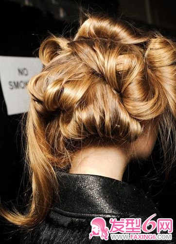 Step 4用大号圆筒梳将每一区的的头发向内侧卷曲,同时结合吹风定型,风力不易过大,以免吹散发卷,然后以发卡固定;