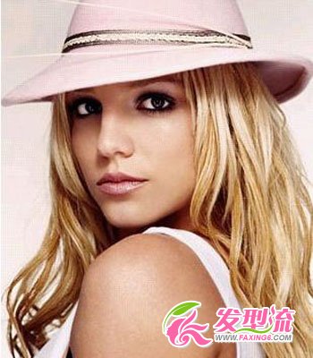金黄色长发烫出蓬松微卷,把小女人的妩媚气息展现得淋漓尽致。搭配粉色的小礼帽,非常时尚,潮流范儿十足。