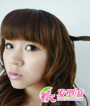 从后脑取出一缕头发,编出一条小麻花辫,绕额头一圈,然后用黑色小发卡固定好。