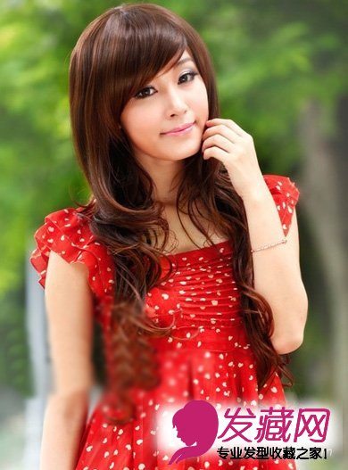 九分的长刘海完全可以修饰小脸型,而且还可以变得温柔淑女,披肩的波浪长卷发,十分的显气质浪漫,搭配红色点点连衣裙更温柔淑女。