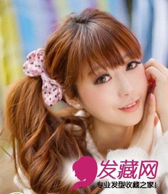 长卷发扎成一个简单的马尾,增添了美眉的甜美可爱系数。侧扎的马尾伴有精灵般的女生甜美气息。棕黄色的染色十分时尚抢眼,齐刘海是最佳减龄的一款发型,粉粉的蝴蝶结正是清纯少女的可爱发饰。很令人动心的一款侧扎马尾长发。