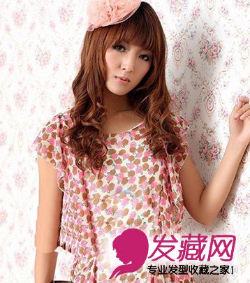 最能衬托出一个女孩的甜美气质,长长的大波浪卷发让女孩气质变得娇美了许多,弧度齐刘海好看又甜美,发饰也起到一定的修饰作用了哟!