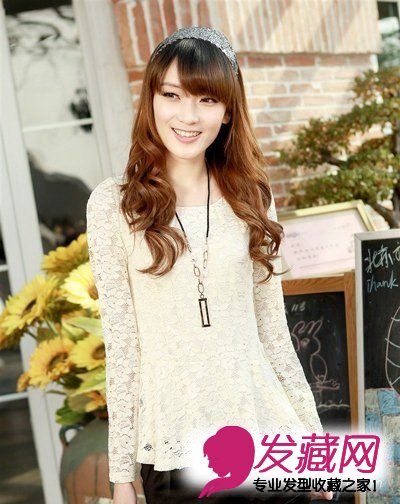 圆弧的斜刘海很是时尚,将女生的脸凸显的更加尖细,搭配栗色的染发,更显女生的成熟气质,银灰色的发箍的点缀,成熟与优雅气质兼具。