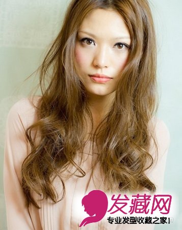 中分的长刘海,从脸颊处开始大弯的波浪卷,蓬松而动感,给人既可爱又性感的感觉!