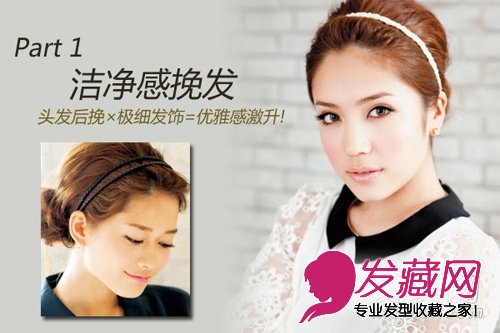 关键:头发后挽×极细发饰=优雅感激升!