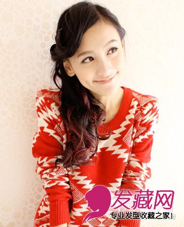 小编点评:将刘海与两侧的头发制造出半圆弧度用发夹固定在一侧,显得非常清新开朗活泼的感觉,将烫上了螺旋式大卷的长发放置在一侧肩头,充满小女人的性感妩媚。