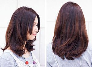 正面:发型在及肩的长度,利用卷发 器做出向内的卷度,因为发型的层次,卷度会呈现更多的层次感。多层次的卷度有效地修饰脸型,达到小脸的效果。将刘海 中分,增加额头的分量,有效将脸型拉长,达到熟练的效果。而且五官会因此被突出。