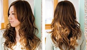 发型解析:长头发往往是千篇一律,但我们总是在创新新的发型,但无论如何,波浪形的大卷发永远都是我们的经典款式,只是每次我们会在这其中加上刘海 的变化和发色的变化,让它看起来具有灵动性。