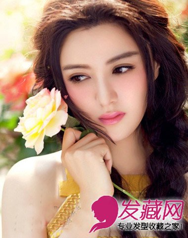 韩式卷发发型,尽显浪漫唯美的气质魅力,这款长卷发重点在于打造蓬松的麻花辫搭在胸前,营造出自然美感效果,柔和了脸部线条。