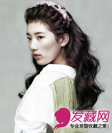 这款长卷发扎发适合发量丰厚的MM打理,露额的编发造型清爽自然,编发的设计令整体的