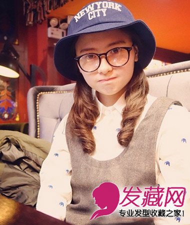 扎俏皮的发辫造型,发卷自然卷曲,很适合发量少的妹纸们打造下,搭配帽子很有清新甜美的少女气质。