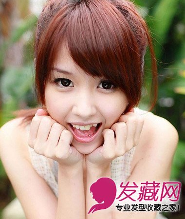 扎发,修剪出的利落层次感发丝飘逸清新,棕色挑染发色时尚清新,长脸瞬变瓜子脸。