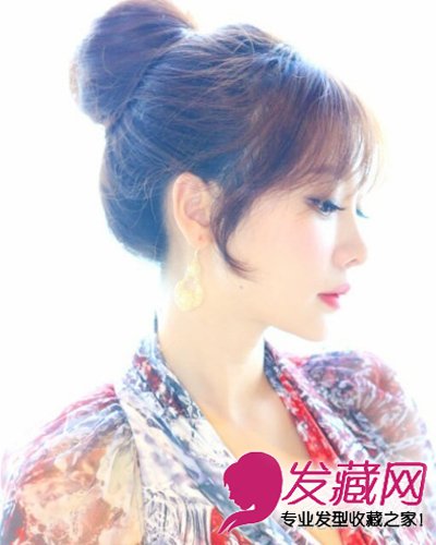 丸子头配上剪碎了的空气感齐刘海,非常适合轻熟女,能提升成熟女人味,吸睛度也非常高哦。